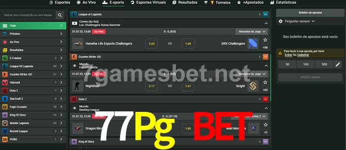 O 77Pg Bet oferece uma grande seleção de opções de apostas em e-sports com probabilidades competitivas